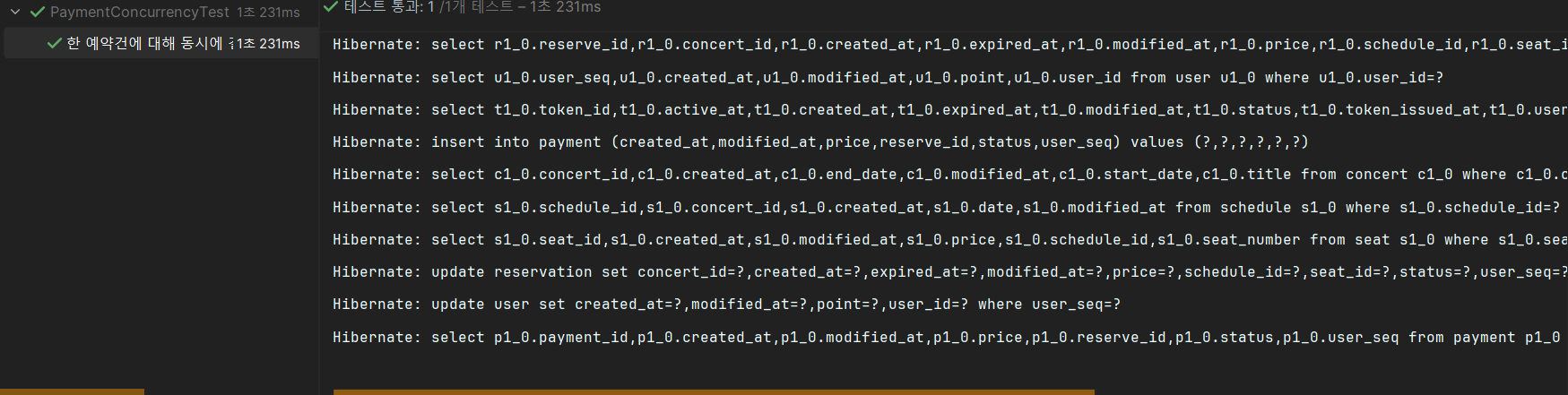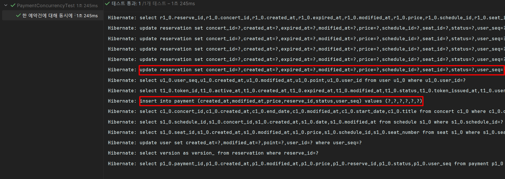 쿼리를 확인했을 때, 결제 생성 쿼리가 먼저 실행되고 나서 예약 상태 변경 쿼리가 실행된다.