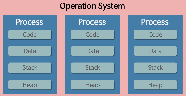 - 윈도우, 리눅스 등 많은 OS들이 멀티 프로세싱을 지원하고 있지만, 멀티 스레딩을 기본으로 하고 있다.