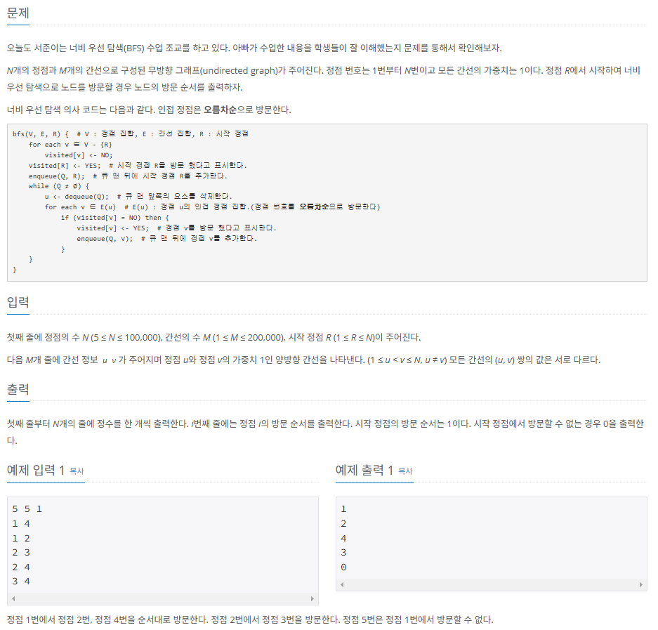 백준 24444번 알고리즘 수업 - 너비 우선 탐색 1