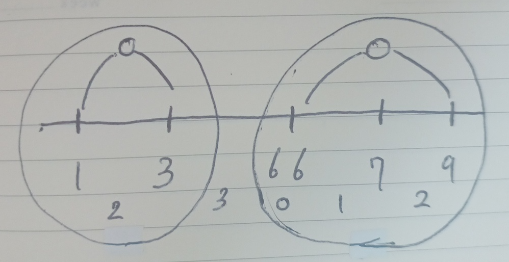 1 ~ 6, 7 ~ 9 로도 집합을 묶을 수 있지만 최소 거리를 구해야 하기 때문에 그림처럼 묶었다.