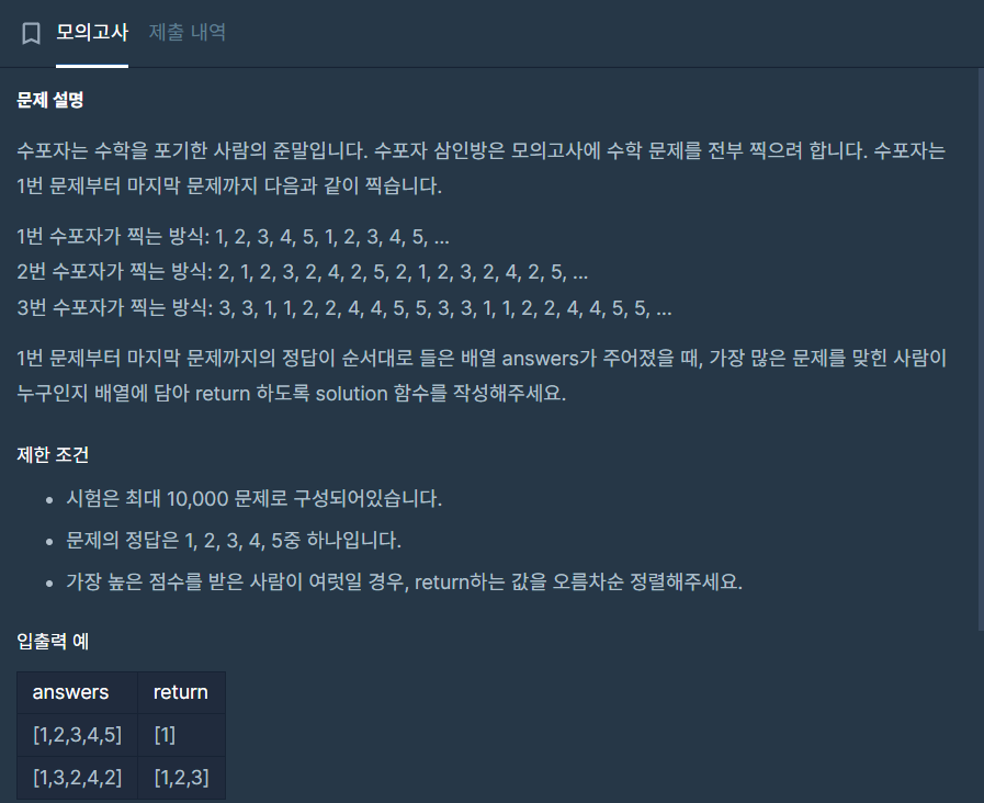 먼저 수포자마다 문제를 찍는 규칙을 정리해야 한다.